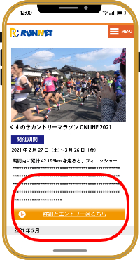 RUNNETにログインし、「くすのきカントリーマラソン ONLINE 2021」を選択、お申込み、参加料の入金を行ってください。